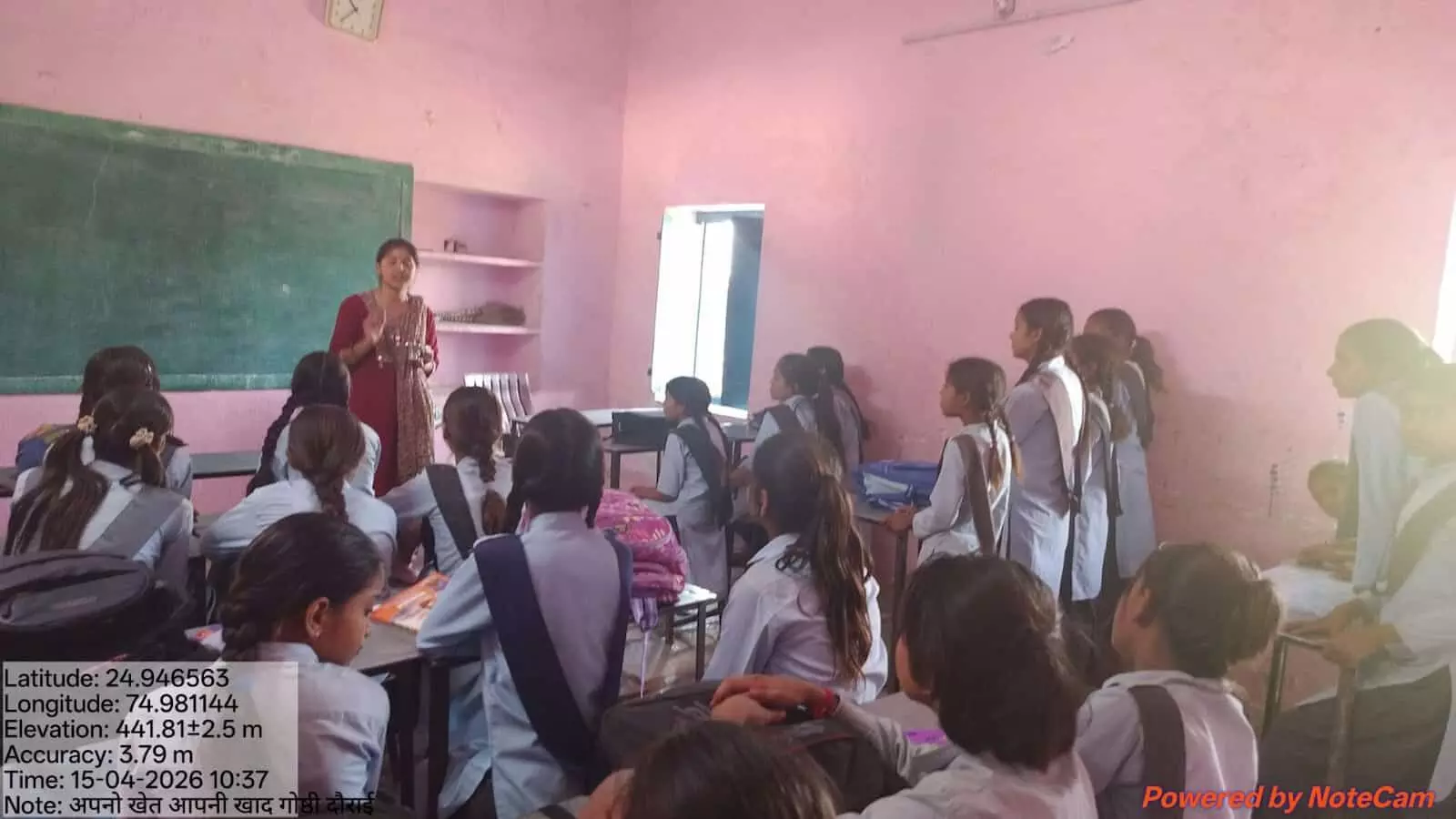 बेगूं के डोराई स्थित राजकीय उच्च माध्यमिक विद्यालय में विद्यार्थियों को मृदा स्वास्थ्य और जैविक खाद के बारे में जानकारी देतीं कृषि पर्यवेक्षक अनिता मीणा। (15 अप्रैल, 2026)