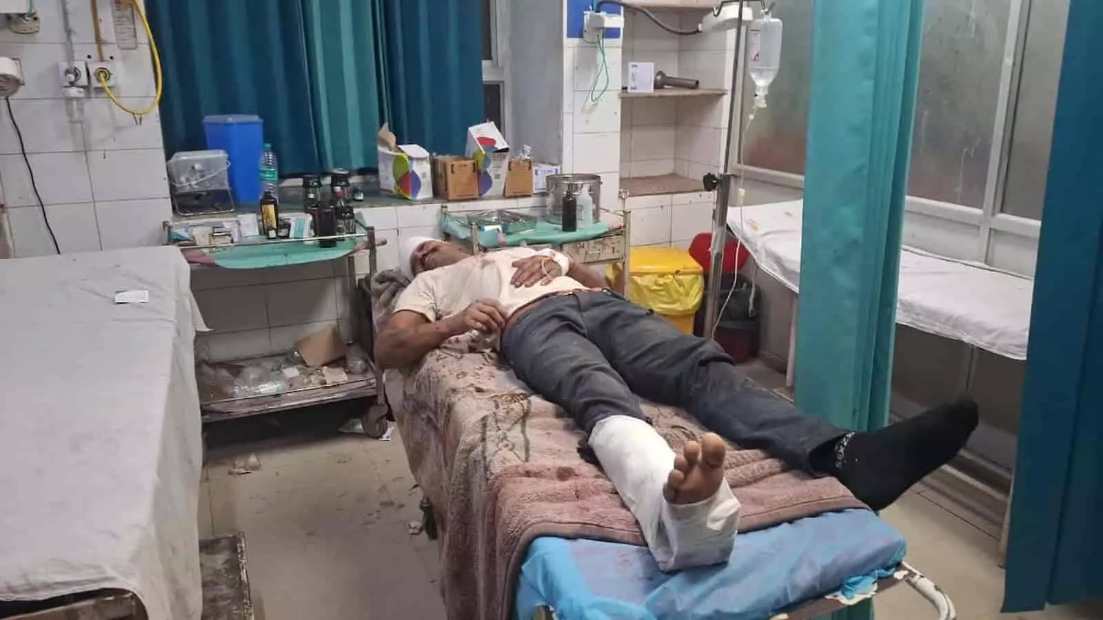 चित्तौड़गढ़ जिला अस्पताल में उपचाराधीन 36 वर्षीय ओंकार सिंह, जो शुक्रवार शाम रेलवे स्टेशन के पास चेतक एक्सप्रेस से गिरकर घायल हो गया था।