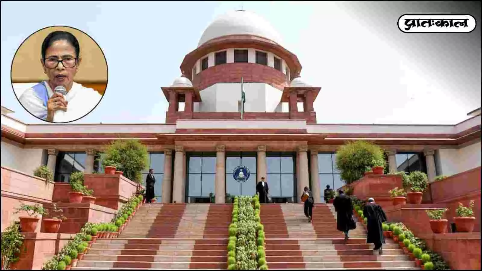 I-PAC रेड मामले की सुनवाई के दौरान सुप्रीम कोर्ट का मुख्य भवन और मुख्यमंत्री ममता बनर्जी (इनसेट)